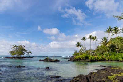 James Kealoha Beach est un parc public de plage à Hilo avec un littoral rocheux parsemé de poches de sable blanc. Un bassin protégé sur le côté est crée des conditions calmes propices à la baignade et au snorkeling.