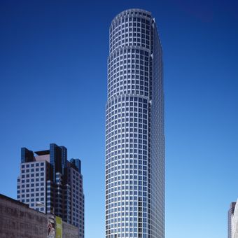 La 777 Tower est un immeuble de bureaux au centre-ville de Los Angeles qui s'élève sur 55 étages avec une façade en verre poli. Le bâtiment dispose de 33 ascenseurs pour desservir les nombreux étages de bureaux.