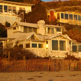 Le Crystal Cove Historic District est une zone côtière au sud de Los Angeles avec des maisons construites directement sur le rivage du Pacifique. Les bâtiments datent des années 1920 et 1930 et illustrent l'architecture de plage californienne précoce avec des structures simples et des façades lumineuses.