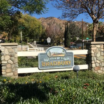 Bradbury est une petite ville d'environ 2 miles carrés au pied des montagnes San Gabriel, caractérisée par de vastes propriétés privées. Les terrains sont volontairement grands, généralement entre 2 et 5 acres, pour conserver un caractère rural.