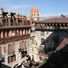 Le Mission Inn occupe un pâté de maisons entier avec 238 chambres, présentant de grandes arches, des dômes, des tours et plusieurs styles architecturaux.