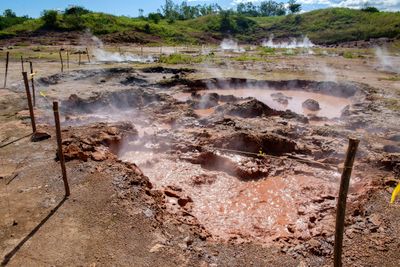 Le site présente de nombreuses mares de boue et évents qui libèrent en permanence des gaz chauds et de l'eau riche en minéraux.