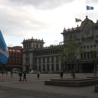 La Plaza de la Constitución est un parc central situé dans la Zone 1 de Guatemala City, Guatemala, avec une fontaine au centre entourée d'espaces verts et de bancs. La place se trouve directement à côté de la cathédrale métropolitaine et du Palais national, deux bâtiments qui forment la toile de fond architecturale du centre historique.