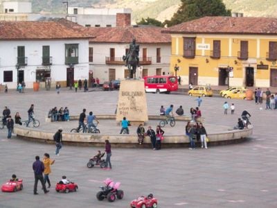 La place a été fondée pendant l'epoque coloniale comme marche principal et a reçu son nom actuel en 1847 lorsqu'une statue de Simon Bolivar y a été installee. Cette sculpture a ete creee par Pietro Tenerani et marquait une nouvelle connexion au mouvement d'independence.
