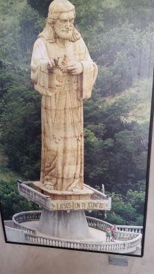 Le Christ de la Miséricorde mesure 24 mètres de hauteur sur une colline, composé de 195 pièces en métal et fibre de verre surplombant la baie.