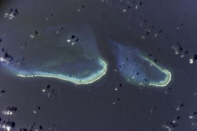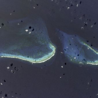 La formation récifale s'étend sur 26 kilomètres de long et 9 kilomètres de large, comportant deux structures d'atoll séparées par un canal profond.