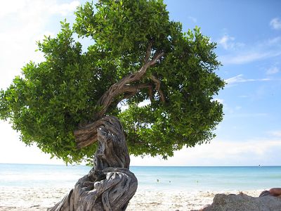 Des arbres Divi-divi indigènes poussent le long du rivage avec des troncs et des branches courbés en permanence à des angles de 90 degrés par les alizés constants. Cette adaptation naturelle aux conditions de vent difficiles crée un aspect distinctif introuvable ailleurs sur l'île.