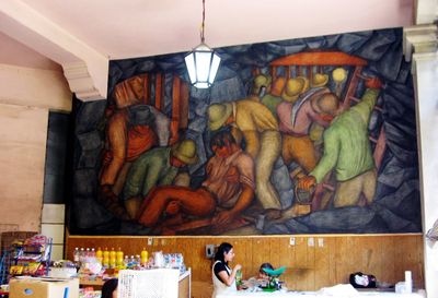Les fresques murales montrent des scènes de travailleurs et de thèmes sociaux reflétant le Mexique des années 1930. Vous pouvez observer ces œuvres d'art en vous promenant entre les étalages du marché.