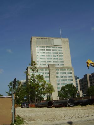 L'immeuble s'insère dans un ensemble de gratte-ciel qui caractérisent le quartier des affaires et définissent l'image de la ville.