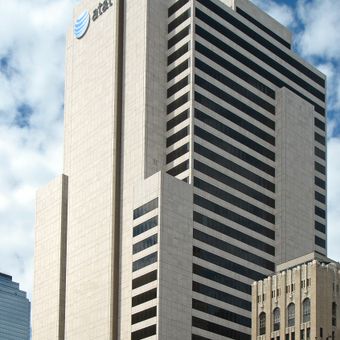 La Whitacre Tower, également appelée One AT&T Plaza, est un immeuble de bureaux de 37 étages au centre-ville de Dallas avec une façade en pierre blanche et verre. La tour contient de vastes espaces de bureaux et se connecte directement au Akard Street Mall, s'intégrant ainsi au quartier commercial.