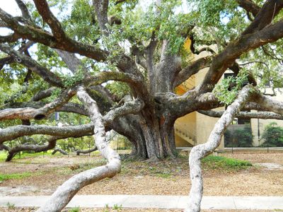 Le Chene de l'Amitie est un grand chene vivant situe sur le campus du College Gulf Park avec un tronc epais et des branches tres etalees. Son large feuillage offre de l'ombre importante dans toute la zone environnante.