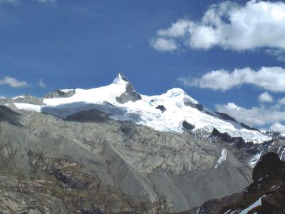 Pariacaca est une montagne des Andes centrales située à la frontière entre les régions de Junín et Lima, s'élevant à environ 5.750 mètres. Ses versants abrupts sont couverts de neige et présentent diverses formations géologiques.