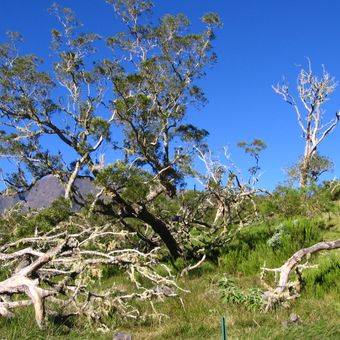 Situé à 1.800 mètres d'altitude, ce plateau dans le cirque de Mafate de La Réunion abrite une forêt peuplée de tamarins endémiques.