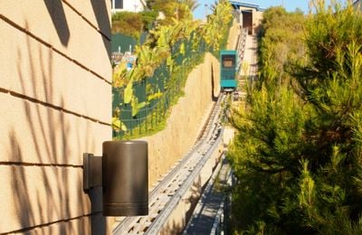 Le funiculaire de Strand Beach fonctionne sur une colline escarpée, reliant le parking supérieur aux sables de la plage de Dana Point.