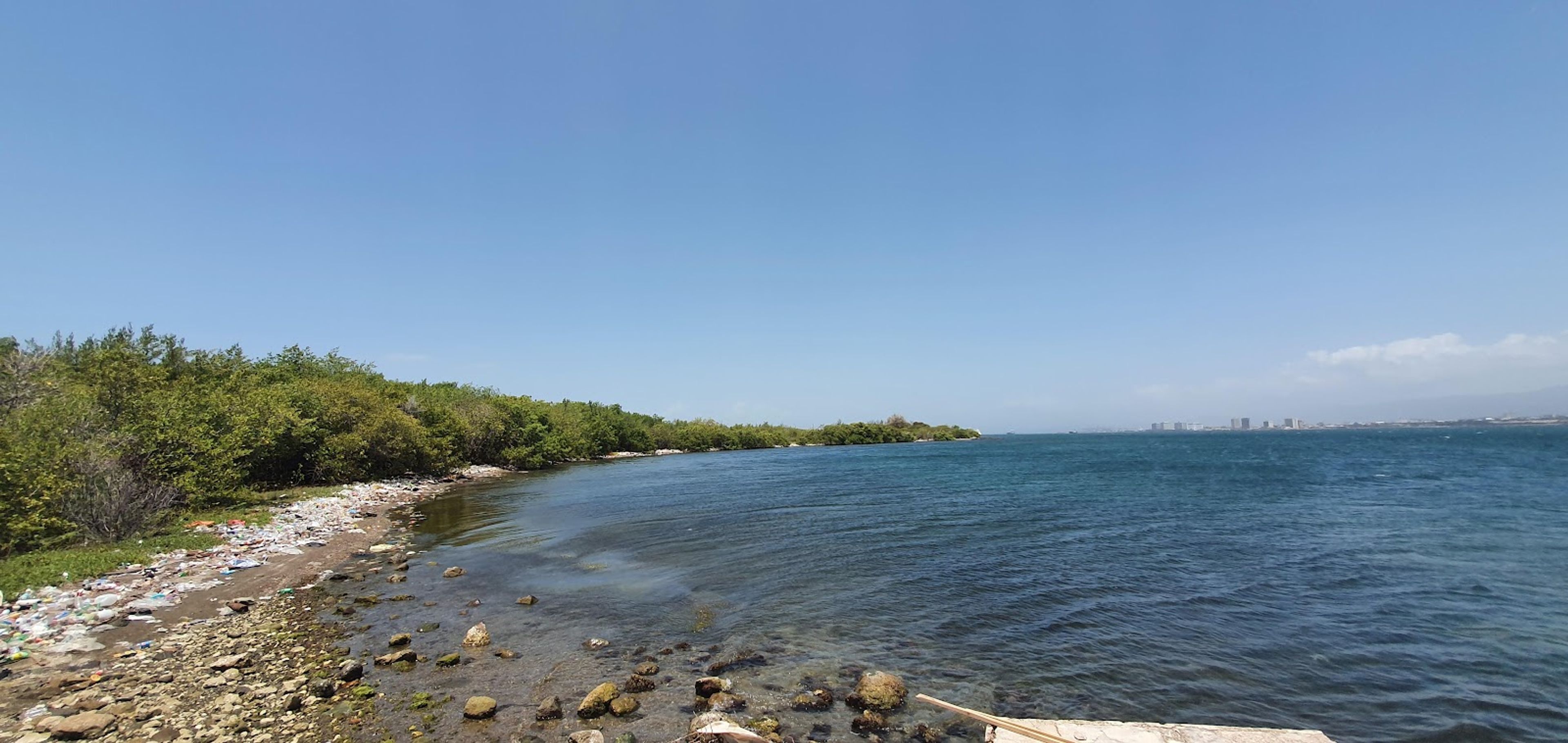 La zone côtière présente une étendue de sable blanc le long du rivage, où les eaux claires rencontrent la mer des Caraïbes.