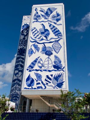 Le Bacardi Building est une tour de bureaux de sept étages à Miami avec une façade frappante composée d'environ 28.000 carreaux bleus et blancs importés du Brésil. Les carreaux, numérotés à la main par l'artiste brésilien Francisco Brennand, forment de grandes murales sur les côtés nord et sud du bâtiment.