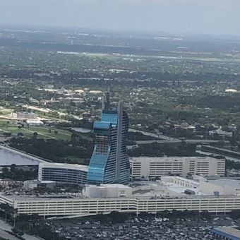 La tour en forme de guitare du resort s'illumine spectaculairement la nuit, projetant des faisceaux visibles dans toute la région. Ce repère frappant rend la propriété reconnaissable depuis presque n'importe où dans le sud de la Floride.