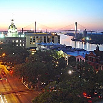Savannah est une ville côtière située sur la rivière Savannah en Géorgie, reconnue pour son plan urbain de rues et de places publiques établi au XVIIIe siècle. Le centre-ville s'articule autour de 22 squares aménagés entourés de maisons bourgeoises, de rues pavées et de grands chênes recouverts de mousse espagnole.