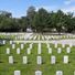 Le cimetière de 2,1 hectares présente des rangées ordonnées de pierres tombales blanches marquant les sépultures des militaires et leurs familles.