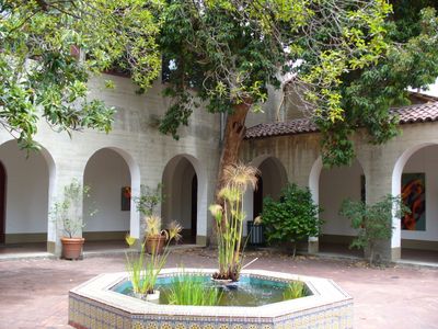 L'Institut d'Art de San Francisco occupe un ensemble de bâtiments de style colonial espagnol surplombant la baie depuis Russian Hill.
