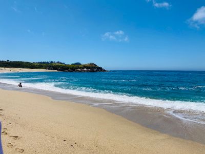 Située le long de la Route 1, la Plage du Monastère présente des rivages de sable doré et des eaux profondes bordant l'Océan Pacifique.