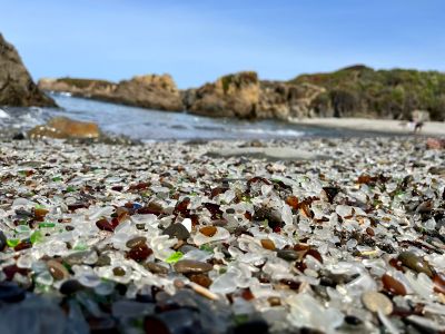 Glass Beach est une portion de côte à Fort Bragg le long du littoral californien, où de petits fragments de verre lisses en vert, bleu, ambre et blanc jonchent le sol parmi les galets et le sable. Le rivage longe des caps rocheux où les vagues ont poli et arrondi le verre pendant des années.