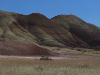 Les Painted Hills présentent des bandes de sédiments rouges, beiges et oranges à différentes élévations dans le Monument National John Day Fossil Beds.