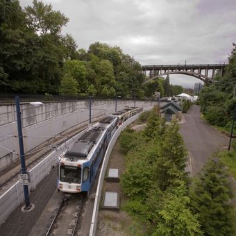 Le pont assure des liaisons essentielles au-dessus de la ligne MAX Light Rail et de la rue Jefferson, avec des espaces réservés aux piétons.