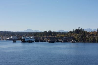 Les ferrys de l'État de Washington relient Bainbridge Island à Seattle en 35 minutes, tandis que le pont Agate Pass connecte l'île à la péninsule de Kitsap.