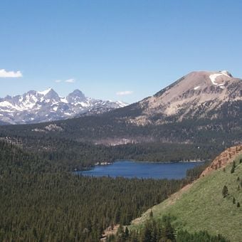 Mammoth Mountain est un dôme de lave en Californie qui domine le paysage environnant et sert de domaine skiable en hiver. Les pentes accueillent un réseau de pistes reliées par des remontées mécaniques, le sommet s'élevant à plus de 3300 mètres d'altitude.