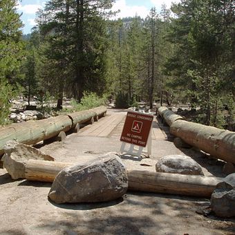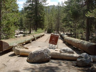 Le camping se situe à 2,350 mètres d'altitude le long du ruisseau Yosemite, proposant des emplacements primitifs pour tentes dans la Sierra Nevada.