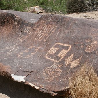 Grapevine Canyon Petroglyphs est un site d'art rupestre avec des centaines de pétroglyphes répartis dans un large lit de sable aux Spirit Mountains, s'étendant des rochers les plus bas aux zones de crête plus élevées. Plus de 700 de ces images sont distribuées sur environ 250 panneaux et plusieurs abris rocheux dans le canyon.