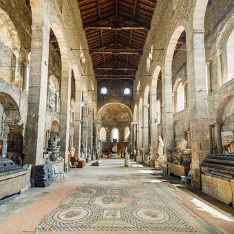 Le musée présente des sculptures en pierre et en marbre, des mosaïques antiques et des inscriptions lapidaires dans une ancienne église du Ve siècle.