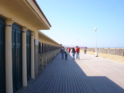 La plage de deux kilomètres comprend 450 cabines en bois le long des Planches, chacune affichant le nom d'une personnalité du cinéma.