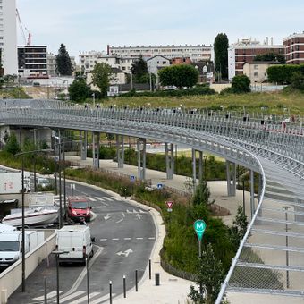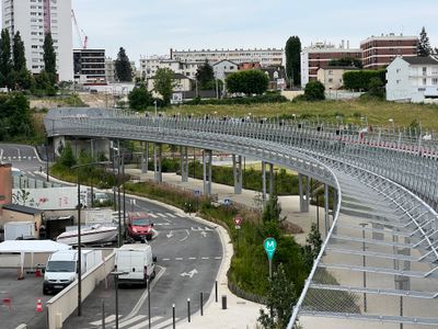 La construction du viaduc a débuté en juillet 2019, l'architecte Marc Mimram concevant la structure pour relier les communes de Noisy-le-Sec et Rosny-sous-Bois.