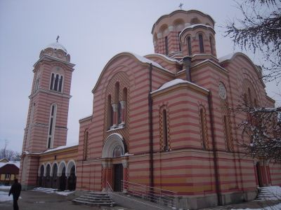 L'église de la Sainte-Trinité présente cinq dômes et intègre des éléments architecturaux serbo-byzantins avec des fresques détaillées décorant ses murs et plafonds intérieurs.