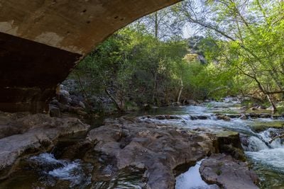 Le pont à arc fermé s'étend sur 21 mètres au-dessus de Fossil Creek, reliant la frontière entre les comtés de Yavapai et Gila en Arizona.