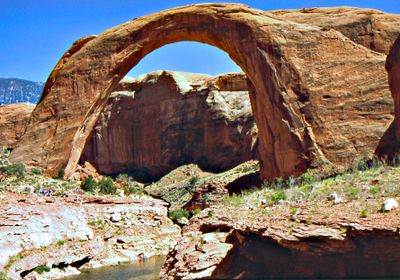 Glen Canyon National Recreation Area est une vaste zone protégée s'étendant sur l'Arizona et l'Utah, avec des formations rocheuses rouges, le fleuve Colorado et le lac Powell. Le lieu offre de nombreuses possibilités pour les activités nautiques et l'exploration du désert.