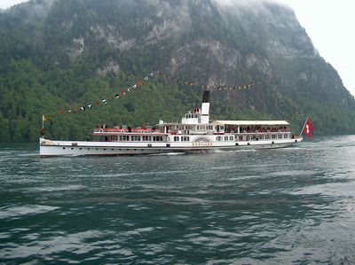 Le Schiller est un bateau a roues a aubes sur le lac de Lucerne qui s'etend sur 63 metres et conserve l'architecture classique des navires a vapeur avec des ponts en bois traditionnel. Les grandes roues a aubes montees des deux cotes restent la caracteristique distinctive et continuent a propulser le navire sur l'eau.