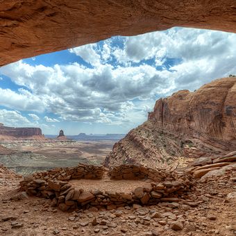 False Kiva est un abri sous roche dans le Canyonlands National Park en Utah, abritant un cercle de pierres aménagé à l'intérieur d'une grotte peu profonde. L'ouverture dans la paroi donne sur un rebord de grès face aux canyons et aux mesas sculptés par les rivières Colorado et Green.