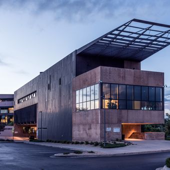 Le bâtiment principal de la bibliothèque Rawlings, conçu par l'architecte Antoine Predock, incarne une interprétation moderne de l'architecture des bibliothèques.