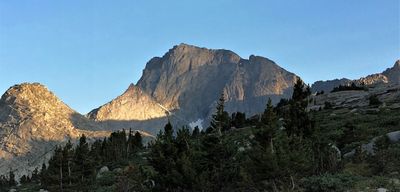 Temple Peak atteint une altitude de 12.980 pieds, avec des formations granitiques et des pentes abruptes caractéristiques de la chaîne Wind River.