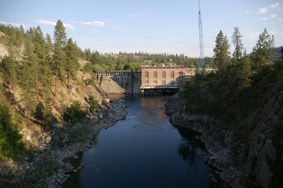L'installation a été construite en 1908 par le cabinet d'ingénierie new-yorkais Sanderson & Porter pour alimenter les lignes interurbaines du chemin de fer Spokane and Inland Empire. Ce développement hydroélectrique précoce était part de l'expansion ferroviaire régionale.