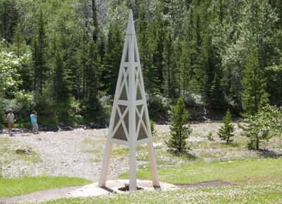 Le Premier Puits de Pétrole de l'Ouest Canadien présente un monument en forme de derrick marquant le lieu de la découverte en 1902.