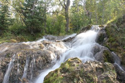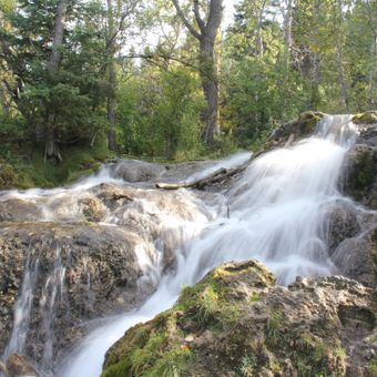Le parc provincial de Big Hill Springs présente des cascades qui coulent sur des terrasses rocheuses recouvertes de mousses et d'arbustes.