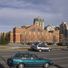 Le Manège militaire Mewata présente des murs en briques rouges avec garnitures en pierre, quatre tours d'angle et des murs crénelés.