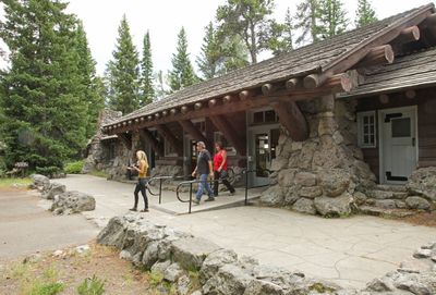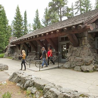 Les gardes forestiers fournissent des services d'information et distribuent des permis pendant que la librairie Yellowstone Forever vend des matériaux éducatifs.