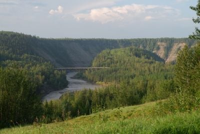Le parc de 58 hectares préserve une section des gorges de la rivière Kiskatinaw, avec des forêts d'épinettes blanches, de peupliers faux-trembles et de peupliers baumiers.
