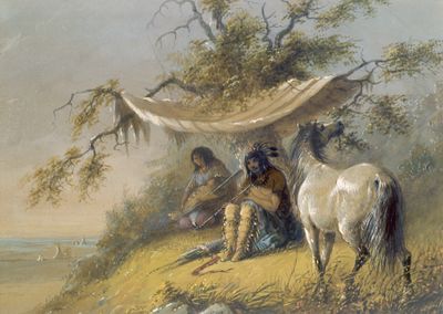 Les Arapaho vivaient à l'origine dans des régions de l'actuel Canada et du nord des États-Unis avant de migrer vers le sud. Après que le Traité de Fort Laramie en 1851 ait établi des droits territoriaux, d'autres accords ont finalement conduit à la relocalisation en Oklahoma.
