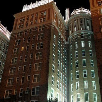 Le Skirvin Hilton Hotel s'étend sur 13 étages avec 225 chambres réparties dans trois tours, présentant des fenêtres et façades d'origine de 1911.